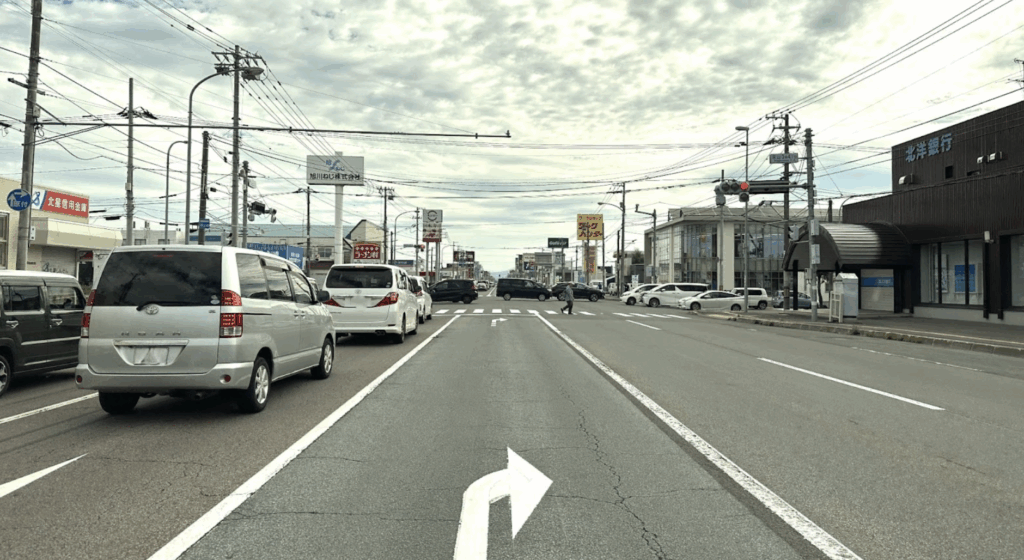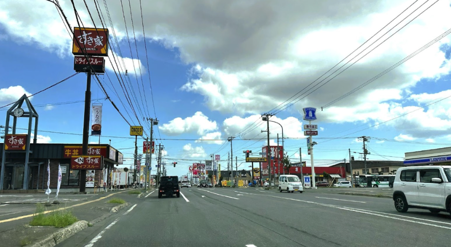すき家さんとローソンさんがある「永山7条5丁目」の交差点まで来たら クラポ旭川店は目の前です!