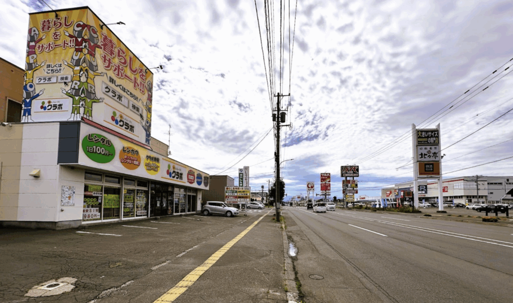旭川環状線という大きな通りに面しており、店舗周辺には飲食店やドラッグストアなど目印となる建物が多数あります。 店舗前には専用駐車場もございます。
